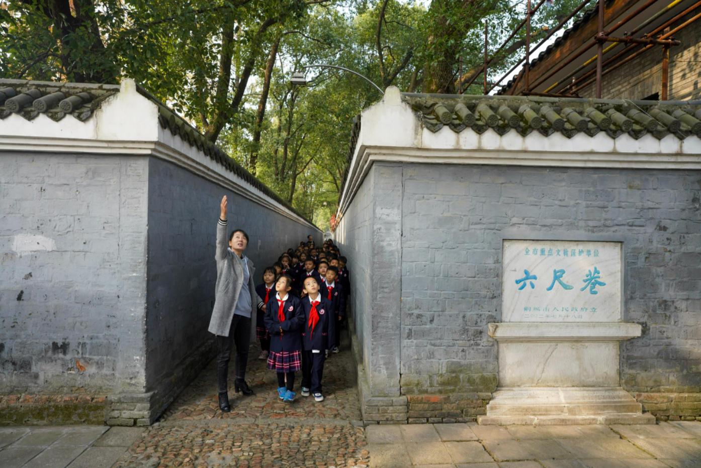 桐城市东关小学老师在向学生们讲解六尺巷典故。(资料图片) 本报记者 李博 摄