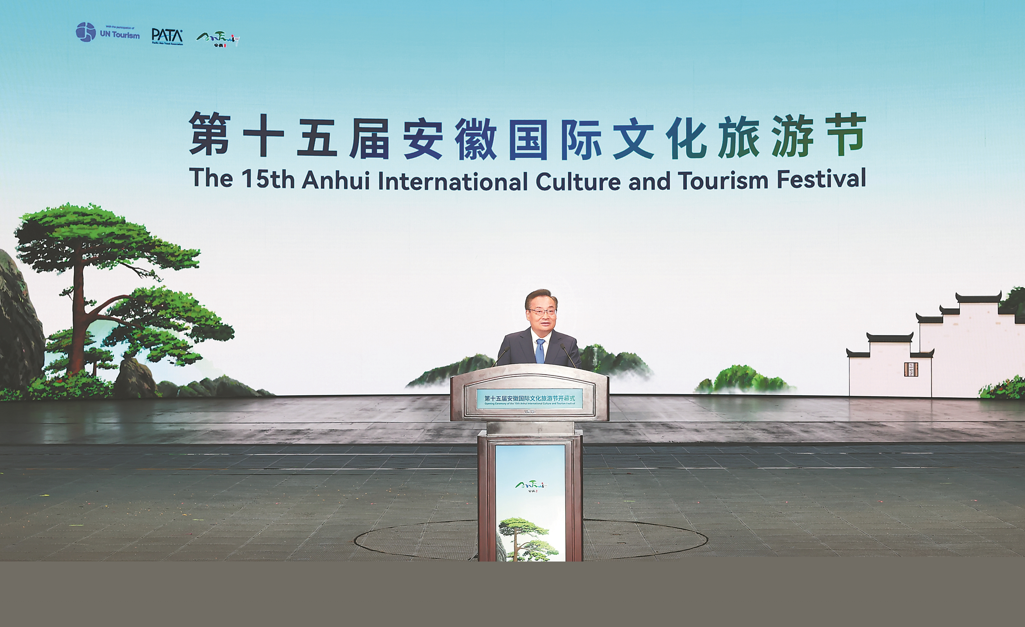 梁言顺首先代表省委、省政府向各位嘉宾表示欢迎和感谢。他说,安徽山清水秀、历史悠久,文化底蕴深厚,每一寸土地、每一片山水,都展现出迷人的风光、蕴藏着动人的故事,山水之韵同人文之胜相得益彰、交相辉映。近年来,我们认真贯彻习近平文化思想和习近平总书记考察安徽重要讲话精神,全面落实“发展全域旅游,把文化旅游业打造成为支柱产业”的重要指示,坚持以文塑旅、以旅彰文,持续做好“百业+文旅”“文旅+百业”大文章,“美好安徽 迎客天下”的金字招牌擦得更亮。当前,安徽正处在夯实基础、全面发力、创先争优、跨越赶超的关键时期。我们将深入学习贯彻党的二十届四中全会精神和习近平总书记关于文旅融合发展的重要论述,持续完善政策保障体系,推动文化和旅游业态融合、产品融合、市场融合,丰富高品质文旅产品供给,打造更多文旅精品,让海内外游客在“诗和远方”的双向奔赴中续写新的故事。