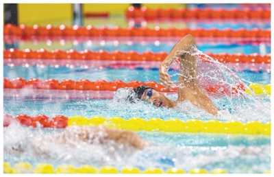 山东队选手张展硕在十五运会游泳项目男子1500米自由泳决赛中。