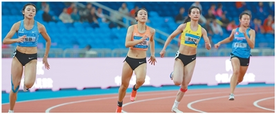 浙江队选手陈妤颉(左二)在十五运会田径项目女子200米预赛中。
