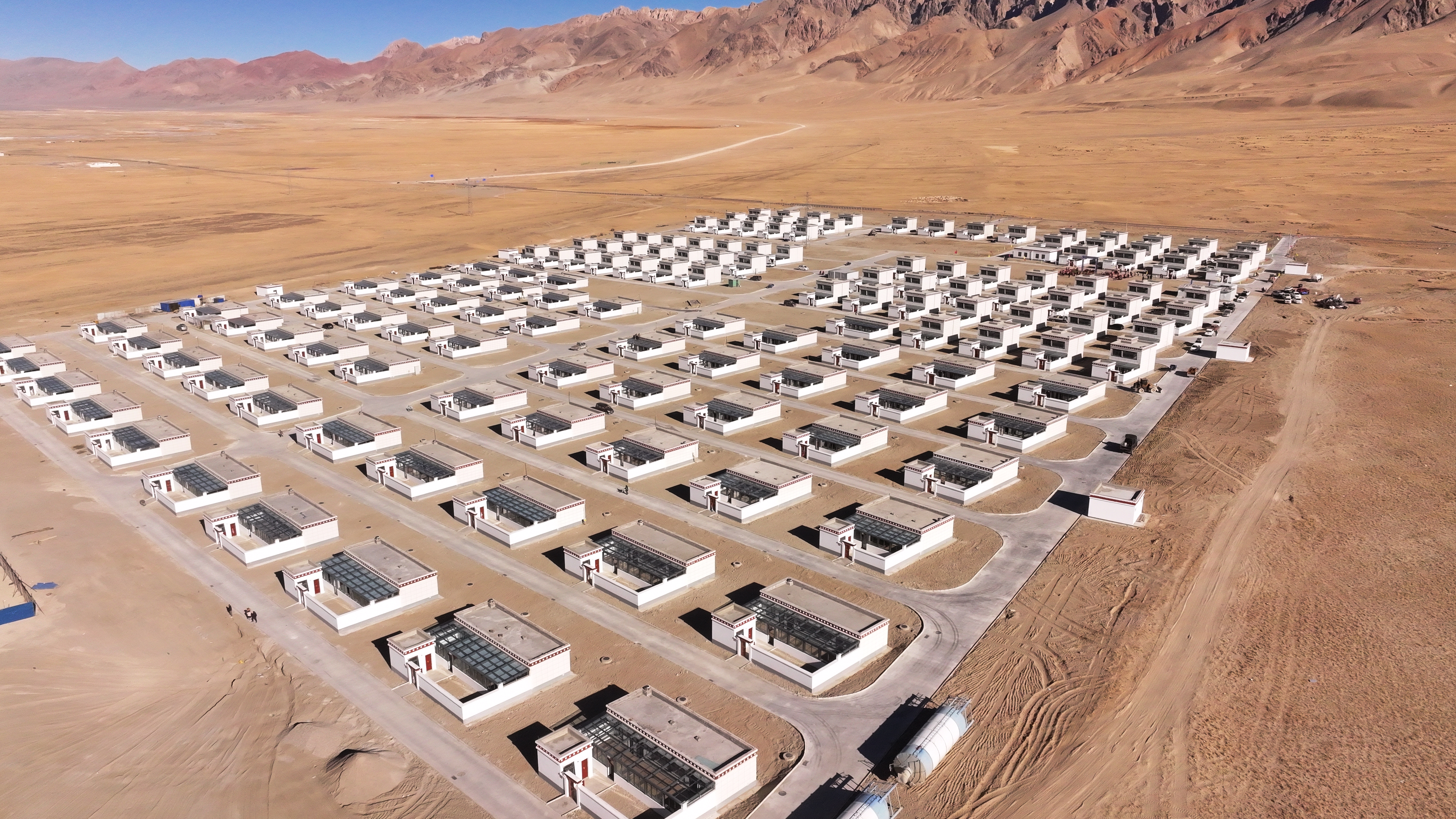 图为在航拍视角下,改则县麻米乡茶措村整齐排列的宜居宜业和美新村新居。改则县融媒体中心摄