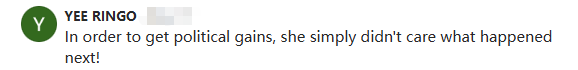 网友@YEE RINGO说道:“为了获得政治利益,她(高市早苗)根本不在乎接下来会发生什么!”