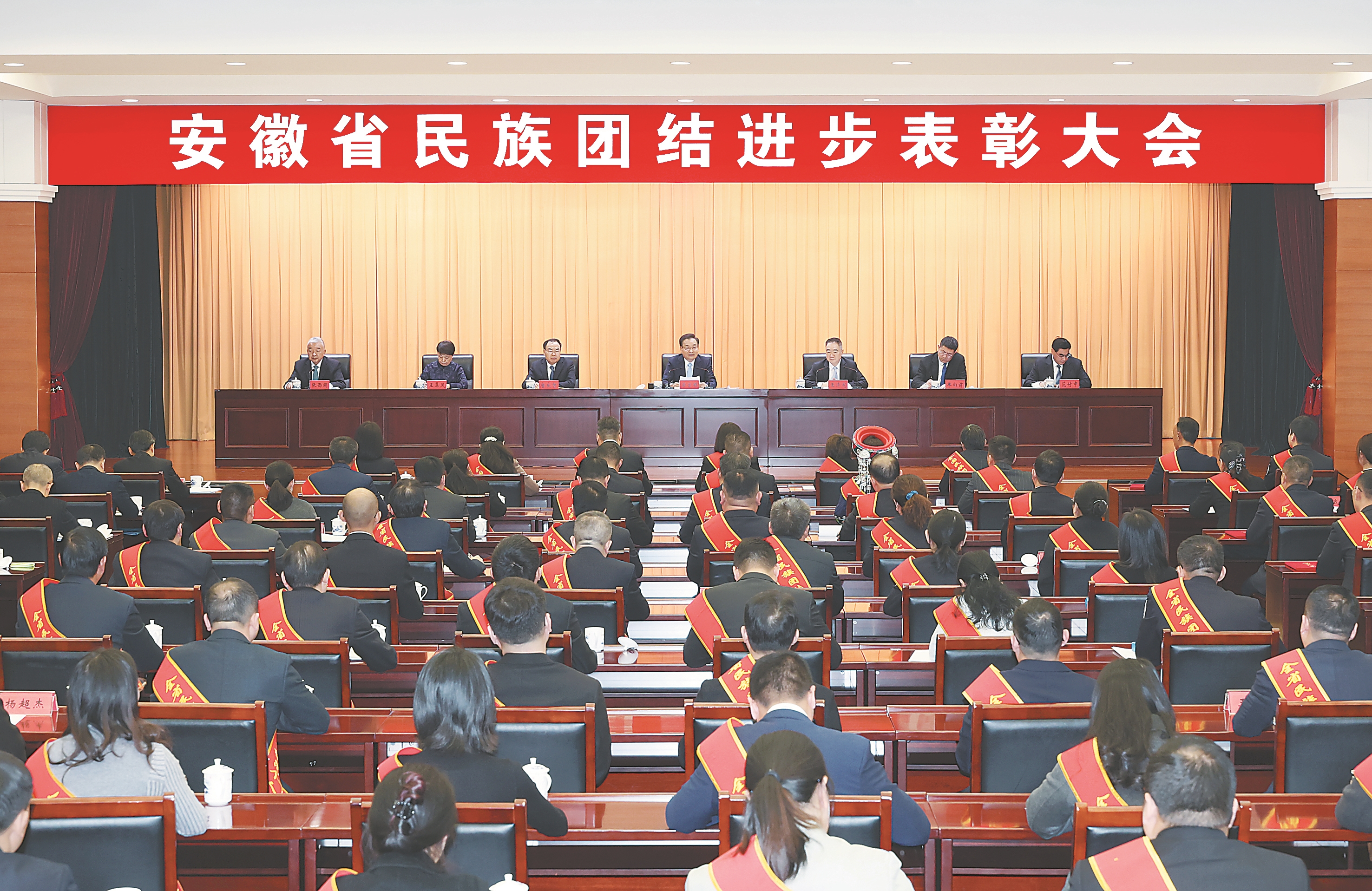 12月30日上午,全省民族团结进步表彰大会在合肥隆重举行。省委书记梁言顺出席并讲话,强调要深入学习贯彻习近平总书记关于加强和改进民族工作的重要思想,坚持以铸牢中华民族共同体意识为主线,推动全省民族工作高质量发展,为打造“三地一区”、取得“三个新的更大进展”汇聚磅礴力量。省委副书记、省长王清宪主持。省政协主席唐良智,省领导单向前、王翠凤、范付中、张西明出席。会上宣读了表彰决定,省领导为受表彰的模范集体和个人代表颁奖,受表彰代表作发言。