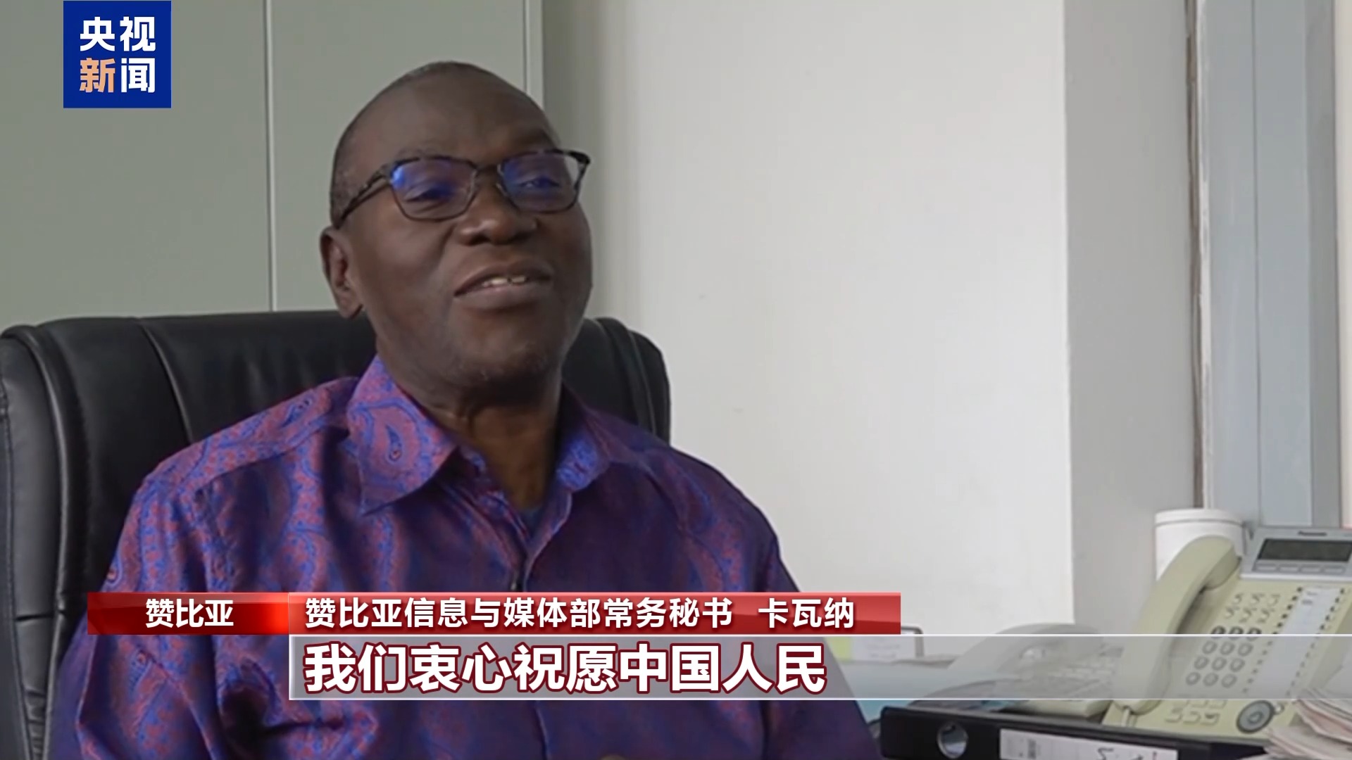 赞比亚信息与媒体部常务秘书 卡瓦纳:值此马年新春佳节之际,我们衷心祝愿中国人民马到成功,马年大吉。借此机会,我们也希望在新的一年里能够进一步促进赞中两国的务实合作,(使其)不断发展壮大,惠及赞中两国民众,实现互利共赢。
