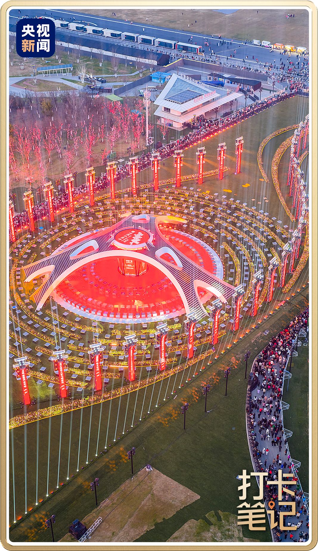 春节假期期间,每天18时到22时,主舞台都会上演春晚同款灯光秀。此外,为了让春晚的热度给当地文旅带来增量,骆岗公园内设置了多个结合了春晚元素和马年元素的打卡点。