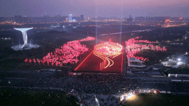 总台春晚中惊艳亮相的合肥分会场的主舞台“皖美之瞳”位于骆岗公园内,这里曾是一座机场,现在成为合肥最大的城市公园,被称为“安徽之窗、省会之心、城市之肺”。