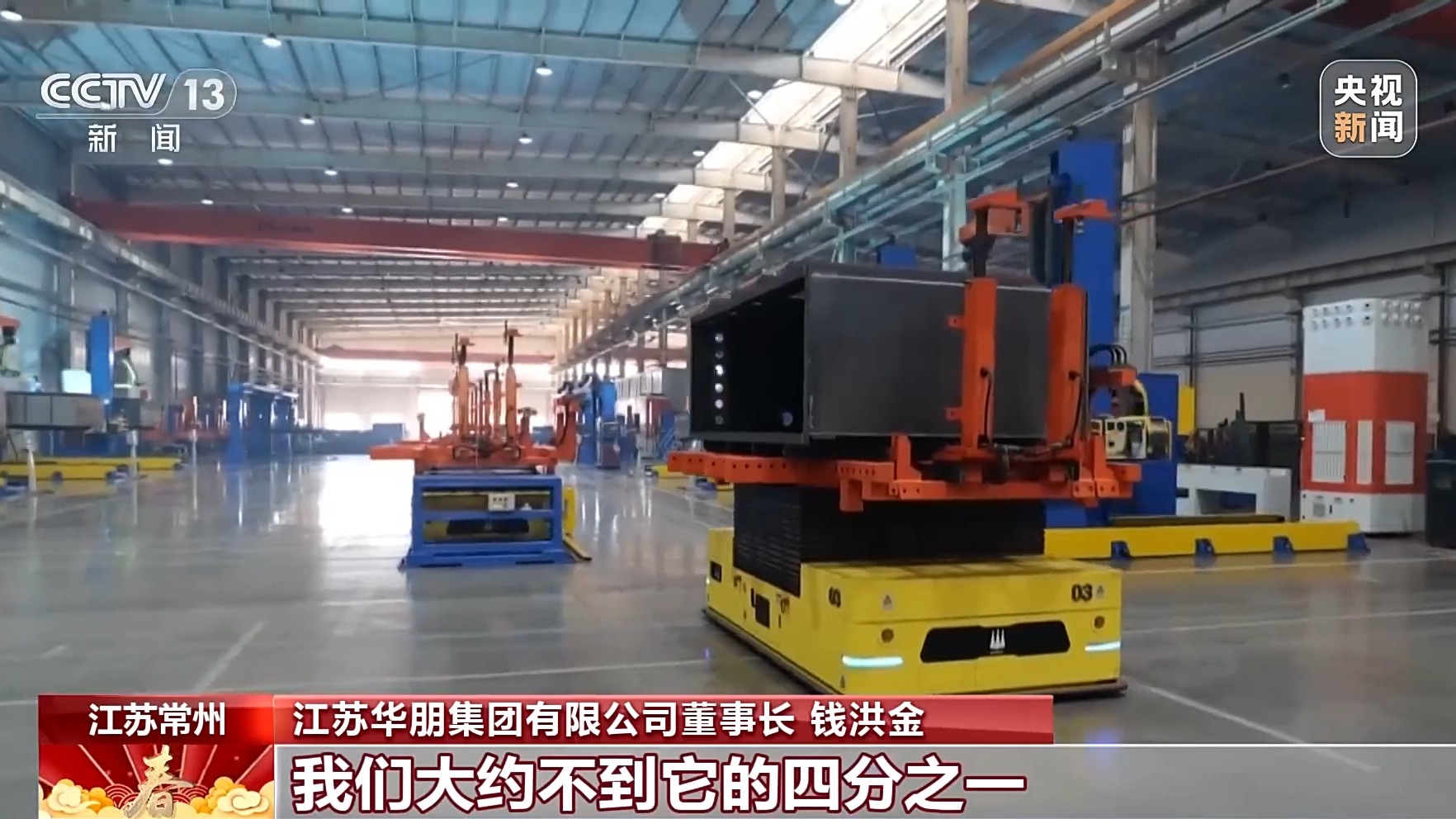 江苏华朋集团有限公司常务副总经理 孙丽君:眼下,我们在手订单已超过30亿元,其中出口订单超过20亿元,现在订单已经排到年底。为了抢抓工期,确保订单按时交付,我们春节期间部分工序都没有停产。
