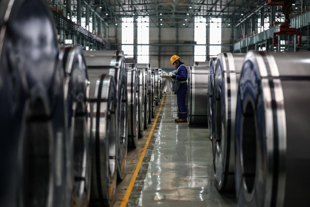 2025年12月6日,工作人员在本钢板材冷轧总厂第三冷轧厂成品库核对清点产品。新华社记者 潘昱龙 摄