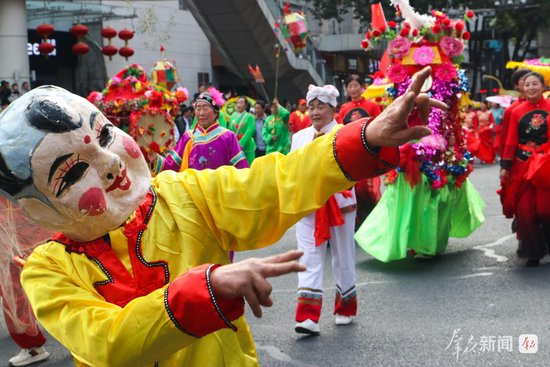 2月27日,社火巡游队伍集中亮相。