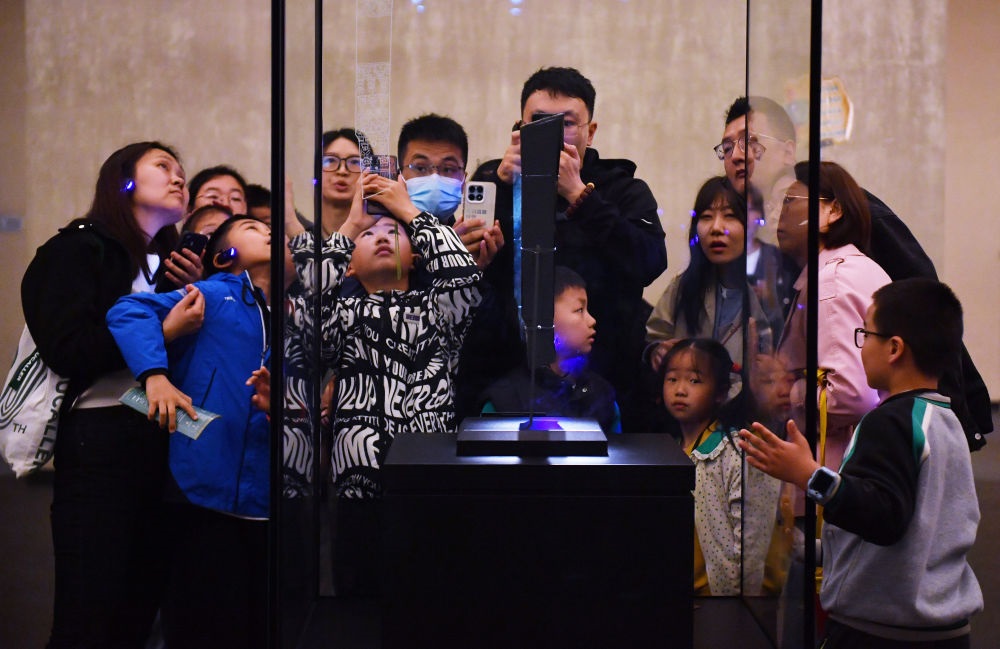 4月3日,游客在四川省广汉市三星堆博物馆拍照留念。新华社记者 卢哲 摄