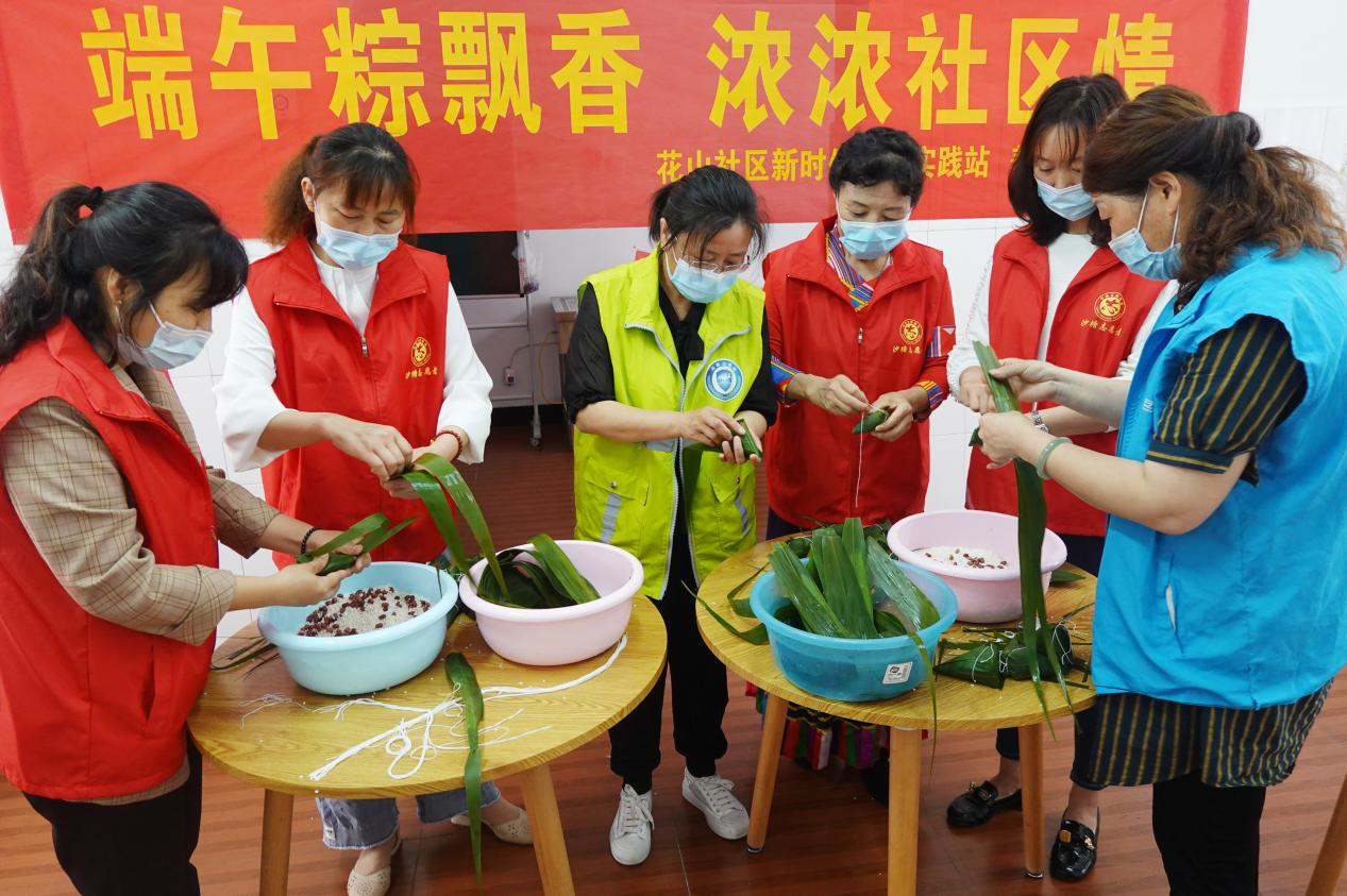 5月24日,马鞍山市花山区沙塘路街道花山社区新时代文明实践站联合安康通养老服务中心开展“端午粽飘香,浓浓社区情”活动,社区志愿者、网格员和养老中心工作人员动手包了近百个粽子,并上门将这些“爱心粽”和购买的绿豆糕分送到6户孤寡老人、独居老人和困难群众手上,传递社会大家庭的温暖之情。