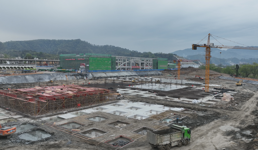在高铁黟县东站站前广场办公区,“距离2022年11月30日还有230天的倒计时牌”异常醒目,“分秒必争、猛虎添翼、拼命加油”充满力量、催人奋进。“施工现场有340多名工人在施工,我们每天加班加点赶工期,和雨季赛跑,目前已经全部完成站前广场地下承台1432根桩基浇筑任务。”黄山建工集团现场施工负责人程作伟指着项目“作战图”说道。