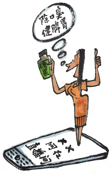 “有一个火爆产品‘清幽卫士’糖果,可以清除口腔异味,安全无副作用,还能调理脾胃……”某直播平台,一位主播特意强调该产品的“脾胃调理功能”。记者近日观看多场直播发现,类似这样夸大、神化普通产品功效让观众误以为是保健品的直播不在少数,有的主播则直接带货保健食品,如复合维生素片、鱼油胶囊、钙片等,且在介绍时暗示观众其食品具有治疗功效。
