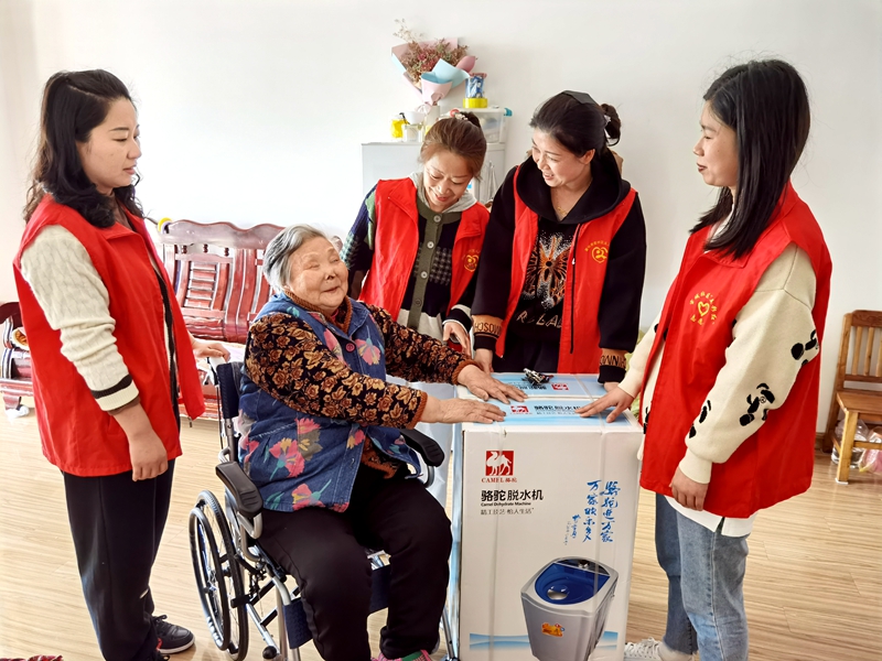 潘腊梅老人今年86岁,双目失明,老伴和儿子多年前就已去世,现如今是一位失独的孤寡老人。几天前,老人找到社区党委书记赵玉莲,说想在家中添置一台甩干机,但因家里条件不好无力购买。赵书记听后立即在社区支部群里发出一条帮助困难群众完成“小心愿”的通知,通知发出后,义工协会党支部第一个作出反应,完成认领“小心愿”购买甩干机的任务。由此,宣州区义工协会党支部即成为响应社区党委发出“帮助困难群众解决小心愿 践行基层支部大爱心”的首个支部。