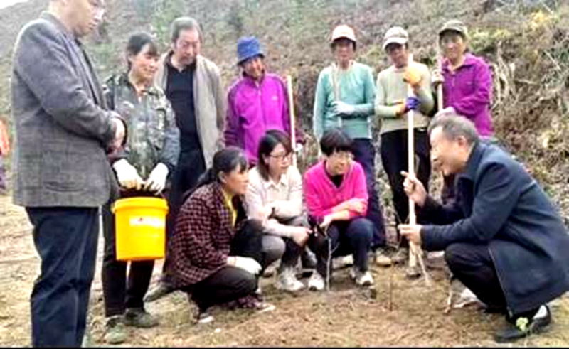 本次培训采取室内和现场教学相结合方式,邀请国家香榧、薄壳山核桃工程研究中心专家,原黄山市林科所所长潘新建授课。在培训班上,潘新建详细讲解了叶用青钱柳良种培育和高效栽培技术的各个环节、措施及注意事项,并对未来青钱柳的利用和产业发展作了展望。下午在项目实施地临溪镇富林山现场示范讲解了青钱柳良种苗木培育嫁接操作,高效栽培技术苗木选择修剪、植苗造林及树体管理等内容,并对参训人员提出的问题一一作了细致解答。