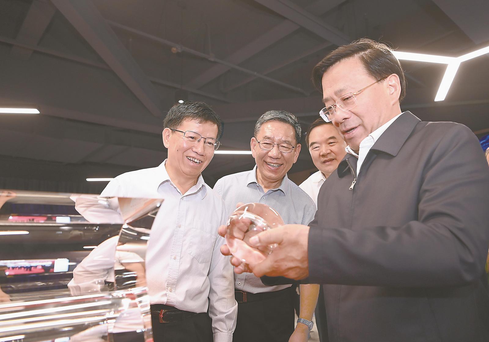 6月7日,省委书记韩俊在深空探测实验室科技展厅,仔细观看航天实物展品,了解航天文化宣传、科普教育情况。本报记者 杨 竹 摄