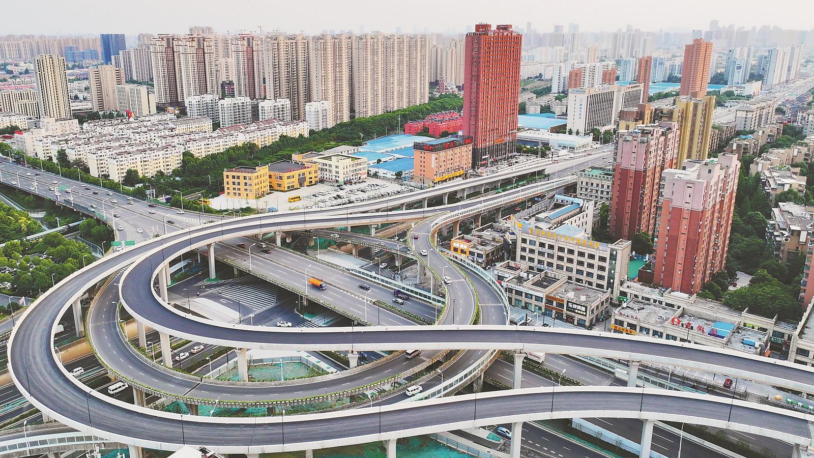 6月10日,俯瞰安徽合肥文忠路高架重点项目,包公大道、淮海大道两座互通立交和部分主线桥主体已完工,城市高架雏形已现。文忠路高架建成后,将直通新站高新区核心区域并向北规划连接北外环高速,形成对外联系的重要通道。