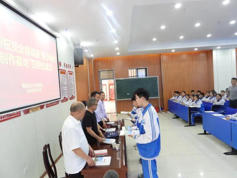 随后,县文联主席毕永杰与县口子实验学校校长周传军一起为“青少年作家创作基地”揭牌。县作家协会还向该校师生赠送了2023年第一期文学内刊《濉溪作家》。