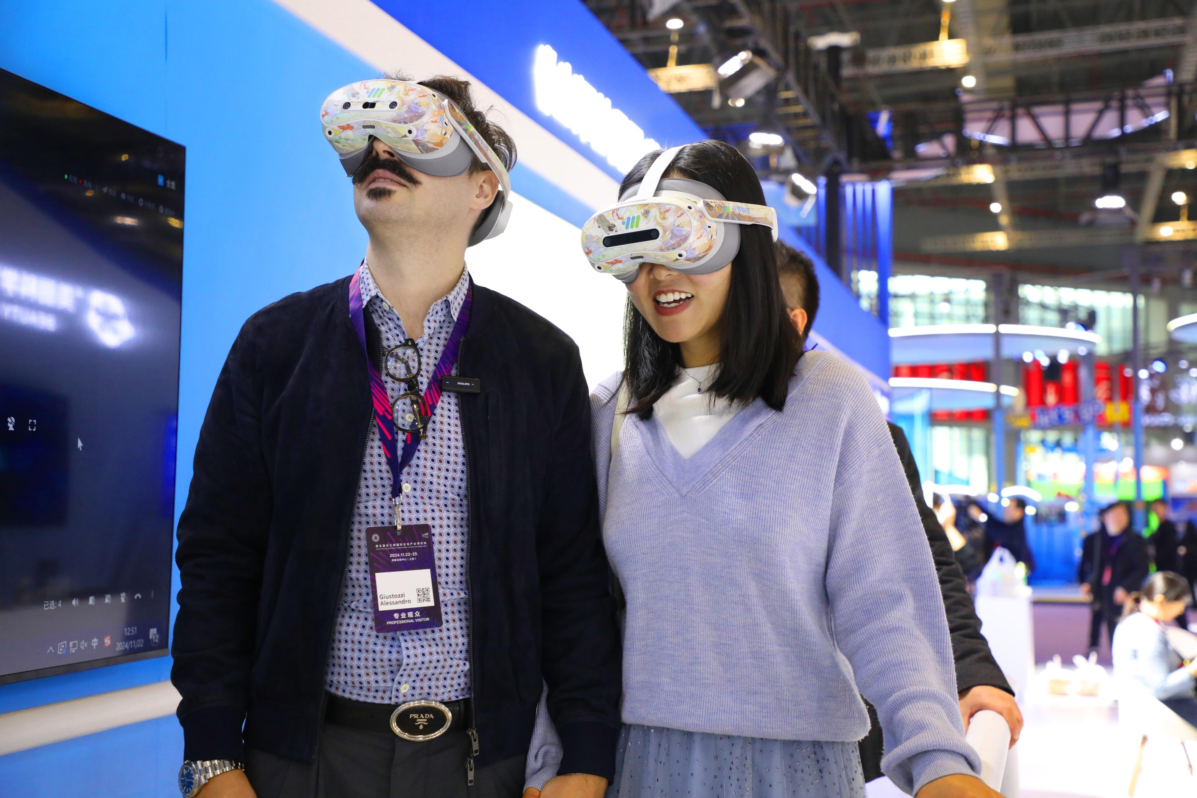在安徽出版集团展位上,一位观众排队戴上XR眼镜,问道:“我一会能见到陈乔年吗?”由安徽人民出版社带来的XR《觉醒年代》,是国内首个红色主题沉浸式交互阅读体验项目,它以长篇历史小说《觉醒年代》为蓝本,通过MR、3D、6DoF、虚拟数字人等新数字技术,将静态图书内容转化为生动的虚拟沉浸阅读世界。