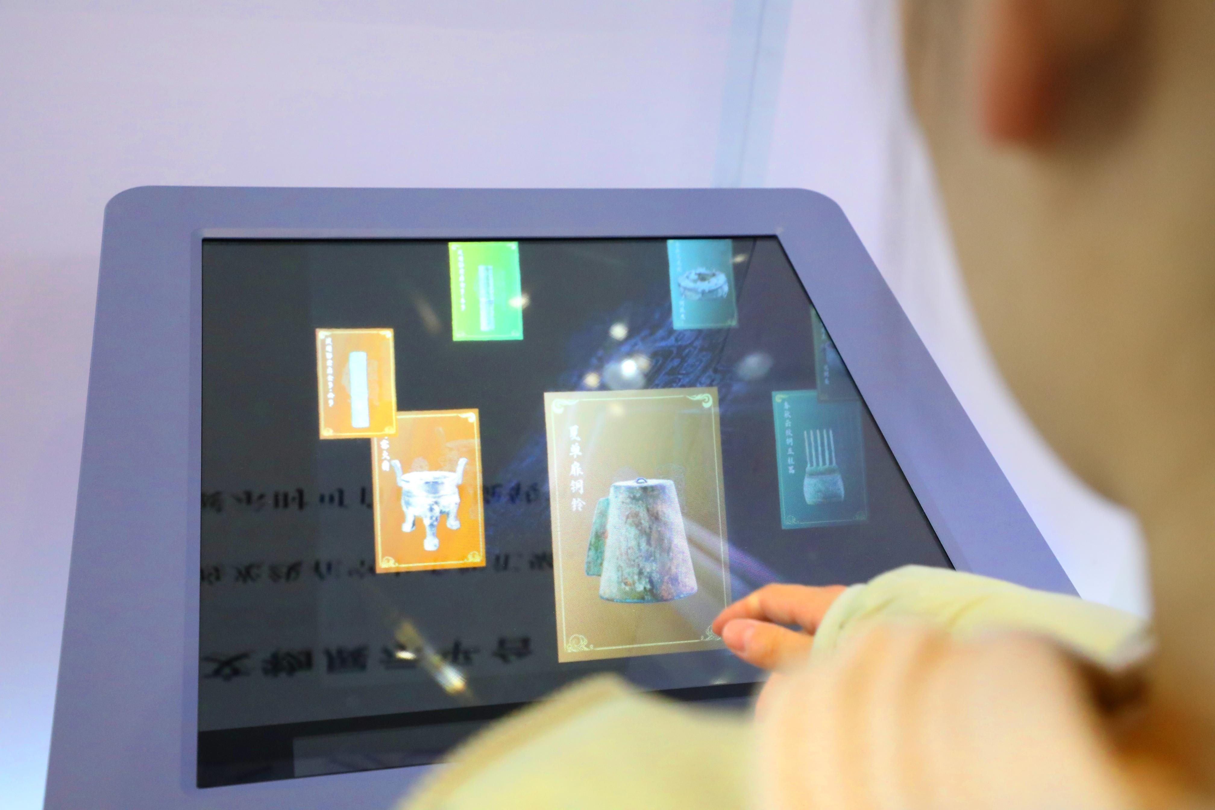 11月23日,在安徽博物院展区里,参观者通过可交互空中成像系统,沉浸式了解安徽境内出土的文物。本报记者 李 季 摄
