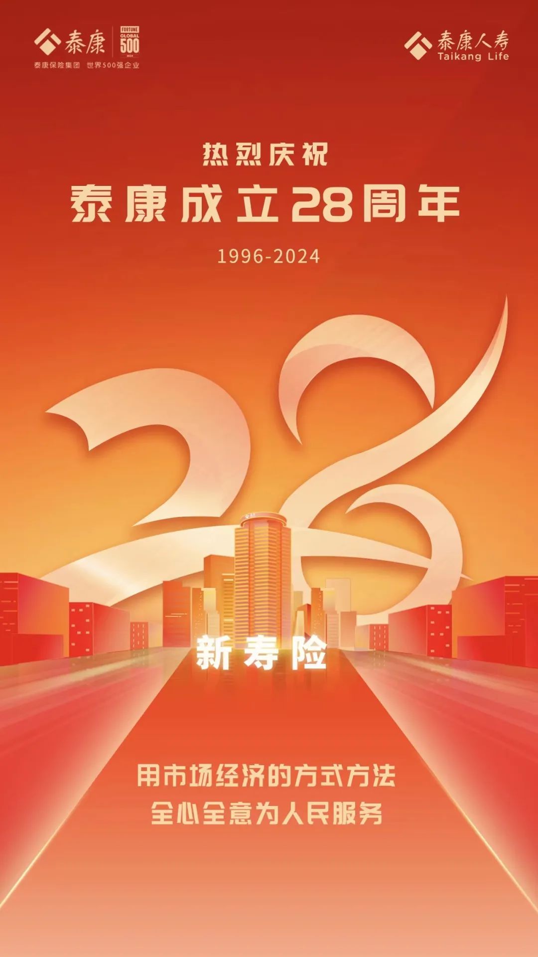 8月22日,泰康迎来28周年生日。泰康保险集团是在改革开放的大潮中诞生的,是扎根在中华民族探索中国式现代化的土壤里成长起来的。自1996年成立以来,始终拥护党的领导,坚定做市场和监管的好学生,走专业化、市场化、规范化的道路,专注主业、专注专业,深耕寿险产业链,坚定做大民生工程的核心骨干企业。