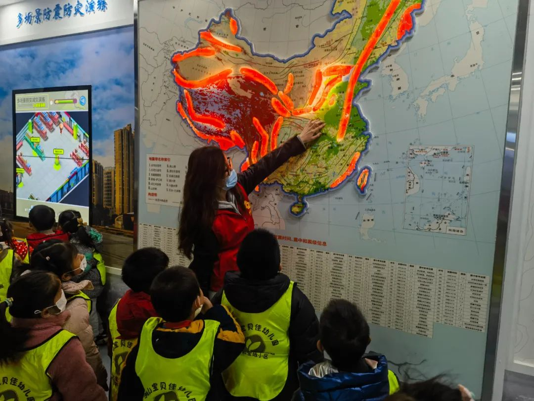 活动中,孩子们在讲解员和巾帼志愿者的引导下,通过VR、AR、全息投影和4D影院等多种展示技术,身临其境体验了解地震的由来、危害、我国地震大事件、地震发生时正确的自救和互救方法等知识体系,并了解国防安全的重要内容,掌握在空袭发生时如何正确保护自己和帮助他人。
