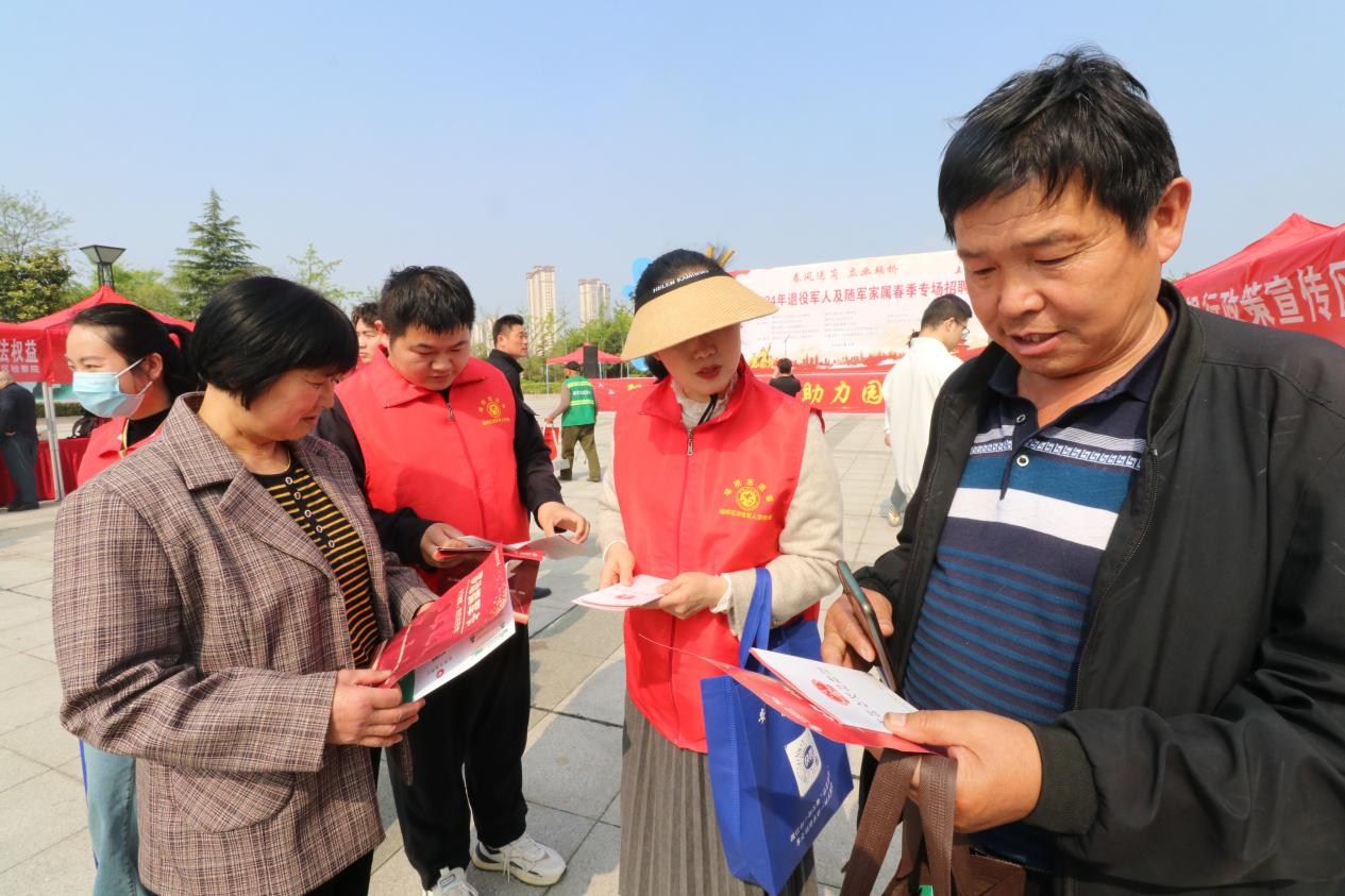 4月12日,宿州埇桥区退役军人事务局志愿者们来到三角洲公园,为参加退役军人及随军家属招聘会的退役军人发放民生工程宣传册页,把党和政府的关心和关爱送到退役军人和优抚对象的心坎上。