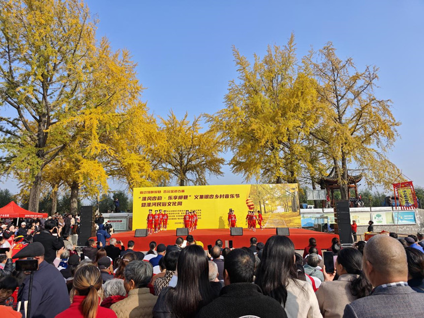 活动打破“舞台边界”,将银杏古道、淮河风光与非遗展演、音乐演出深度融合,既是柳巷镇以“非遗传承赋能乡村振兴”的实践,也是打造“季节限定”文旅品牌的创新尝试。现场游客穿梭于金黄杏叶间,赏民俗、听音乐、品乡味,沉浸式感受“淮畔柳巷”的文化魅力。