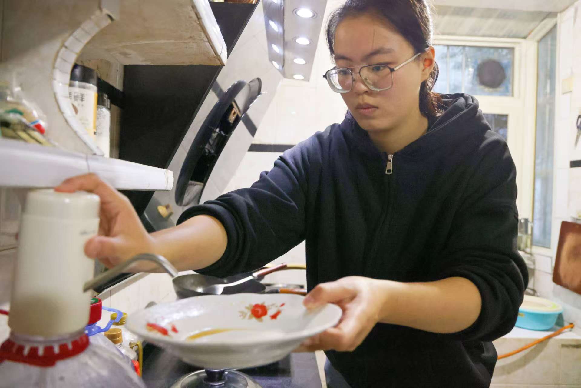 家校相距十余公里,张欣晨每日骑电动车往返,寒来暑往从未间断。清晨五点起床,为奶奶洗漱、备餐、喂饭;放学归家,为奶奶按摩康复、打理日常起居,她细心照料奶奶的饮食起居,贴心排解老人的孤单,用耐心与细心,为奶奶筑起温暖的守护屏障。