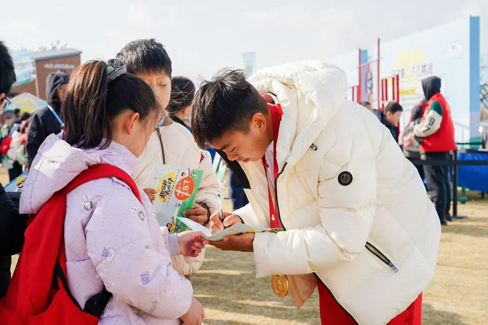 活动在同学们热烈的欢呼声中拉开帷幕。全运冠军张芳芳亲临现场,分享了她不畏艰难、坚持奋斗的夺冠历程。她告诉孩子们:“坚持比天赋更重要”,鼓励大家在运动中培养毅力、尊重规则、享受成长。孟苏平则以自身举重生涯为例,生动诠释了不断超越自我的体育精神,激励少年们奋发向上。互动环节,同学们踊跃提问、请求签名,冠军的榜样力量深深感染了每一位孩子。一名学生激动地说:“我以后也要像冠军姐姐一样,奋发图强,努力向上!”