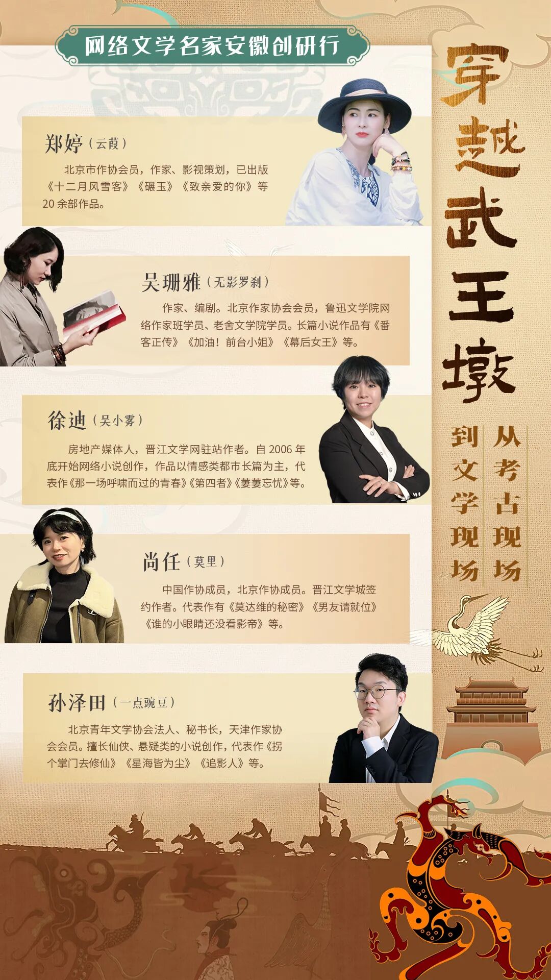 两天之后的12月28日,一场名为“穿越武王墩:从考古现场到文学现场”的文学盛宴将如约启幕。数十位国内顶尖网络文学作家将齐聚国博,凝视着一件件镌刻着历史印记的瑰宝,让千年文明的底蕴碰撞天马行空的文学想象,在考古与文学的交融中,谱写一曲跨越古今的文化交响。