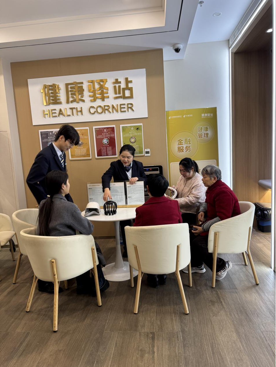 整场沙龙没有繁琐的流程,只有“慢节奏、心贴心”的陪伴:见视力不佳的张阿姨凑着设备说明看不清楚,工作人员逐字逐句读给她听,还特意用马克笔把重点画出来;注意到李爷爷久坐不动,悄悄递上一杯温热水,叮嘱“您慢慢体验,别着急”;聊天话题更是围绕长辈们的生活日常,从买菜做饭到带孙子,句句都是长辈们熟悉的“家常话”。陌生的按摩设备,在耐心引导下变成了缓解疲劳的“好帮手”;严肃的银行网点,也因这些细碎的关怀,成了长辈们放松休憩的“银发港湾”。