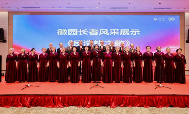 活动现场,泰康之家·徽园梦蝶合唱团带来由人民银行安徽省分行原创的歌曲《反洗钱之歌》,这支由徽园居民组成的合唱团平均年龄84岁,声情并茂的演唱充分展现了泰康享老桃花源的活力养老,现场嘉宾们纷纷喝彩致敬。