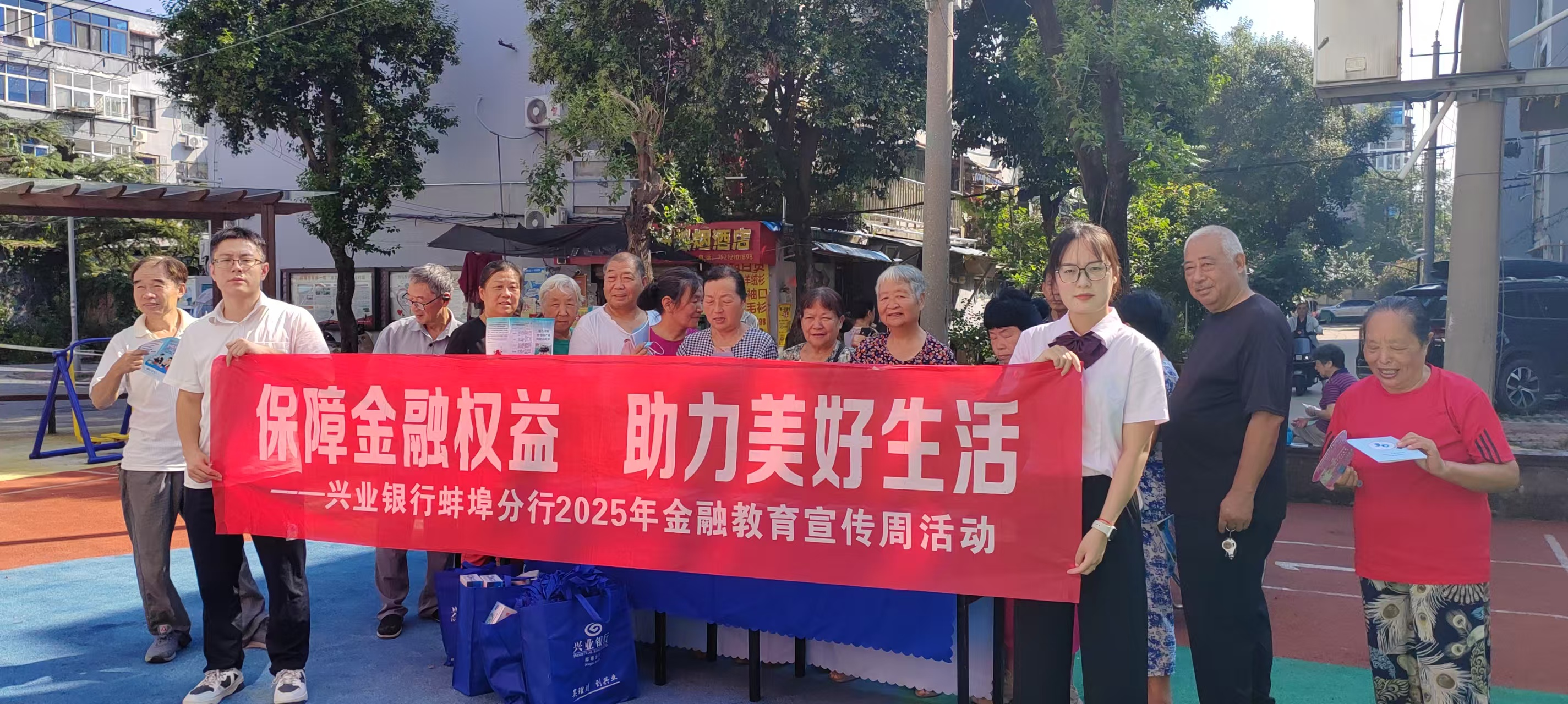 为落实《2025年蚌埠市金融教育宣传周活动方案》部署要求,扎实开展好2025年金融教育宣传周活动,2025年9月16日上午9点,兴业银行蚌埠分行金融宣传小分队来到张公山街道锦江社区,联合社区人员共同开展了以“保障金融权益 助力美好生活”为主题的宣传活动。