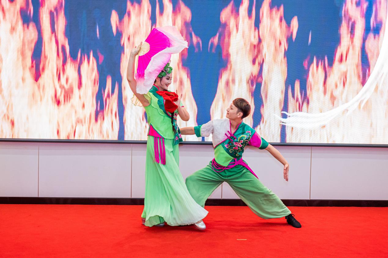 台上,《花鼓飘香》双人舞翩跹而至。舞者衣袂翻飞,如淮上清风,鼓点激越,似淝水波澜,将这片土地的热情与灵动展现得淋漓尽致,瞬间点燃了全场期待。