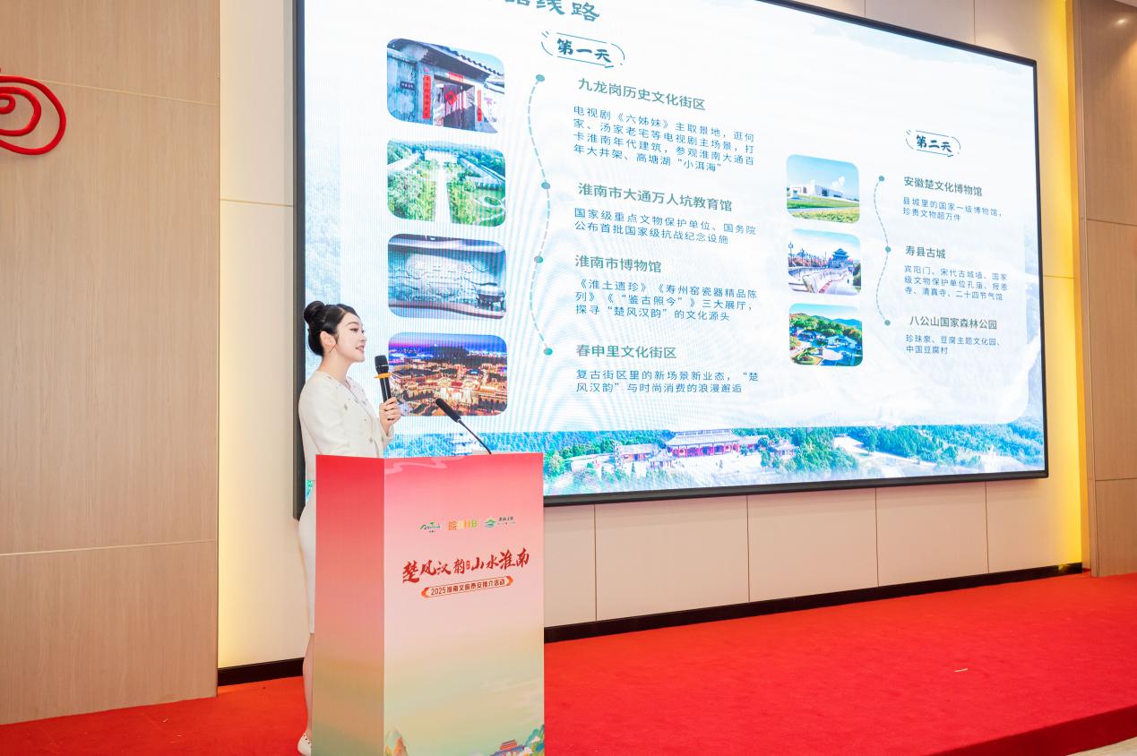 光影余韵未散,精彩的文旅资源推介接踵而至。推介官引领众人深度畅游:在国家历史文化名城寿县的古城墙中,探访千年文脉;于安徽楚文化博物馆的煌煌重器间,触摸楚风浩荡;步入八公山的林泉深处,感悟《淮南子》牢笼天地的智慧;更在武王墩墓的考古现场,惊叹于迄今规模最大楚国高等级墓葬的恢弘气象。一番讲述,将淮南的山水、历史与文化融为一体,生动诠释了这座“中国成语典故之城”的无限魅力。