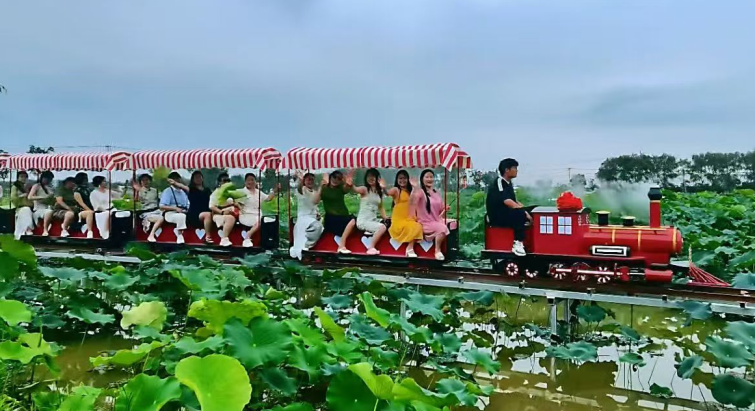 万亩荷园不仅仅是一片荷花观赏地,更是一个多元化的乡村旅游目的地。您可以搭乘观光小火车,穿梭在碧绿的荷田中,与摇曳的荷花擦肩而过;或者乘坐乌篷船驶入藕花深处,体验“莲动下渔舟”的诗意;亦可在树荫下垂竿钓虾,收获即刻送烤,立享鲜味。