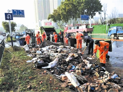 市场星报、安徽财经网(www.ahcaijing.com)讯(记者 王珊珊 通讯员 方玉倩)11月9日,一辆物流货车在合肥市东二环与长江东大街交叉口突发自燃,现场残骸遍布、油污狼藉,严重阻碍交通。瑶海区环卫部门火速出击,经过紧急作业,将满是灰烬与油污的路面彻底清理干净,迅速恢复了道路的整洁与通畅。