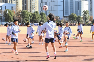 12月9日,合肥市裕溪路学校2025年足球嘉年华暨阳光体育主题实践活动圆满举行。全校师生齐聚赛场,共赴一场竞技体育与运动乐趣的体育盛宴。图为刚刚获得安徽省女子足球联赛冠军的队员们在开幕式上献上精彩的足球表演操。