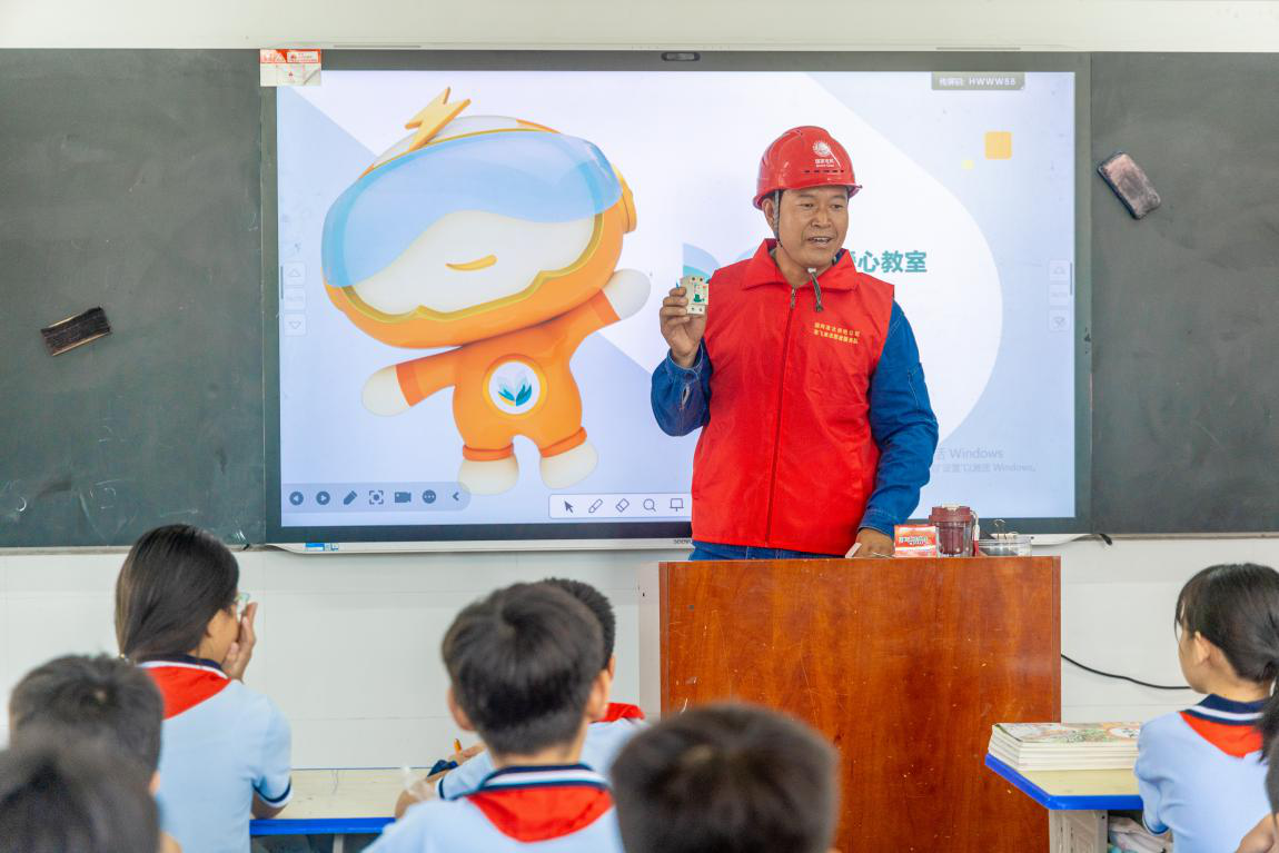 生动课堂 明理导行。课堂上,志愿者化身“电力小老师”,以“ 电小宝探索记”的故事为载体,借助生动形象的PPT和趣味动画,向孩子们介绍了电力基本概念、安全用电的重要性以及生活中的用电小常识。在问答环节,志愿者们还特意准备了《安全用电手册》和小礼品,鼓励孩子们争当“安全用电小卫士”。