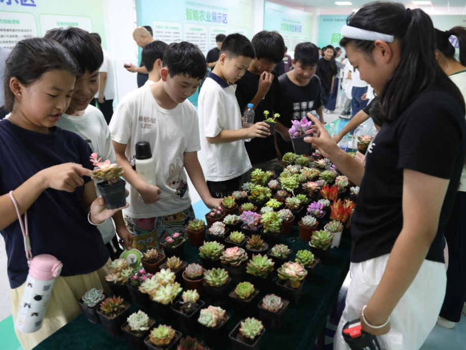 现场设置了六大特色展区,内容丰富、互动性强。垃圾分类区提供智能垃圾桶操作和分类跳舞机体验;低碳出行区通过出行碳排数据对比和虚拟骑行体验,倡导绿色出行理念;变废为宝区组织花盆制作、太阳能灶组装等实践活动;可降解餐具区普及绿色餐具环保知识;智能农业区展示传感器、太阳能杀虫灯等农业科技应用;太阳能应用区设置小车组装、智能浇花装置等互动项目。整个活动现场学习氛围浓厚,学生参与踊跃。