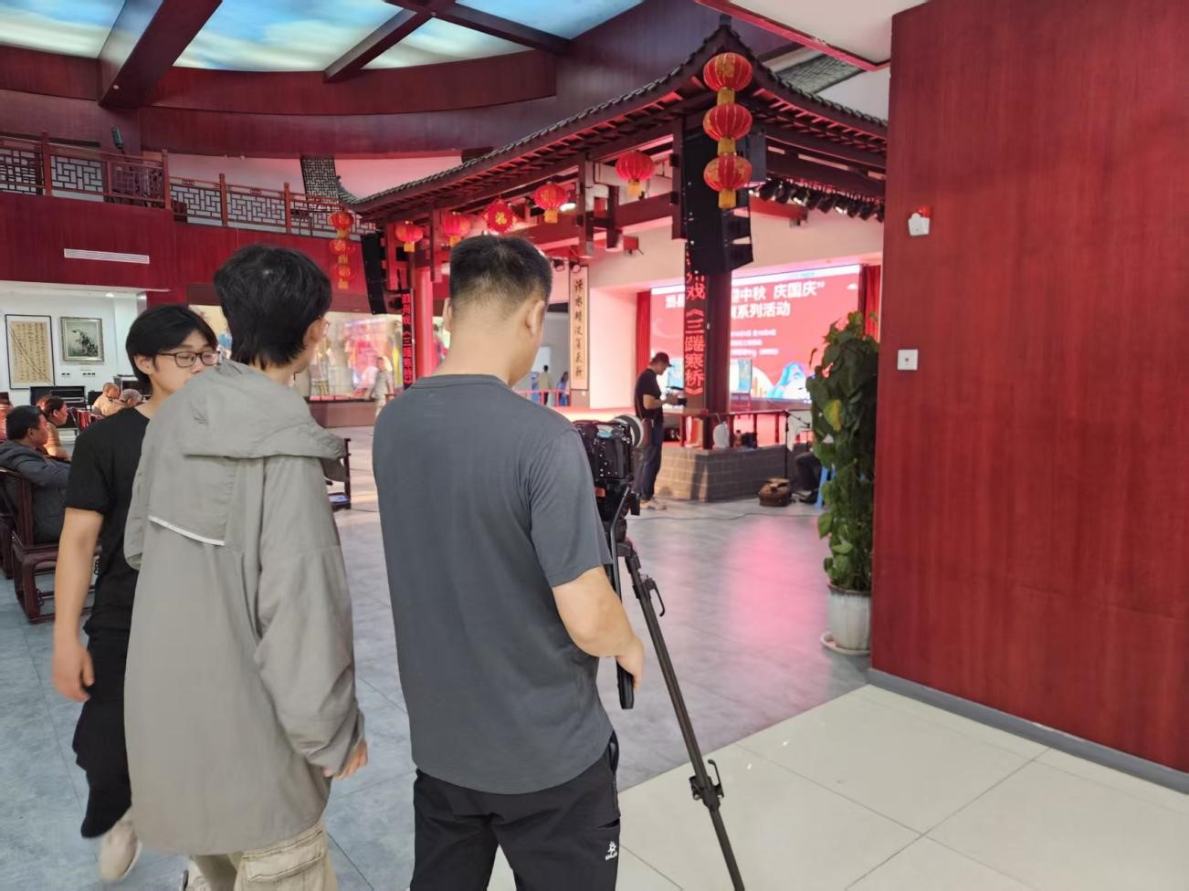 从国庆节至今,志愿者们分工协作,以高清镜头捕捉了刘圩大饼、泗州戏、许记酱菜、王族报老面馆、泗县乡村大席、绿豆金钱饼、葱香麻鸭、药物布鞋等一个个生动场景。无论是文创产品的精巧细节,还是参与者的热情互动,都被他们一一细致记录。在百姓茶馆与泗州戏团,他们穿梭于人群之间,协助采访文创创作者与参与者,深入挖掘背后的故事与灵感。无论是烈日下的奔走,还是反复调整拍摄角度的坚持,都体现出他们对志愿服务的热爱与专注。