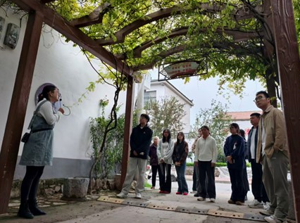 随后,一行人走进梧桐村,沿着三米巷、家风家训巷漫步,欣赏沿途生动的墙绘,并走进非遗小院,沉浸式体验了乡村文化的传承与创新,对石台镇在乡村振兴中保留文脉、焕发新机的实践赞叹不已。