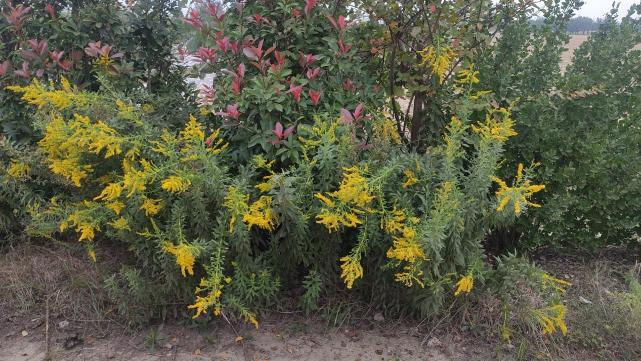 当前正值加拿大一枝黄花盛花期,金黄色的圆锥状花序在田间地头格外醒目,却暗藏生态隐患。这种被称为“生态杀手”的外来入侵物种,单株可繁殖2万余粒种子,随风扩散后极易成片蔓延,其根系不仅与农作物、本土植物争肥争水,分泌的物质还会抑制其他植物发芽,堪称“黄花到处百花杀”。徐楼村地处大沙河流域,农田、河道堤坝及公路沿线成为重点防控区域,此时清除既能精准识别植株,又能避免种子散落造成二次传播,是防治的“黄金窗口期”。