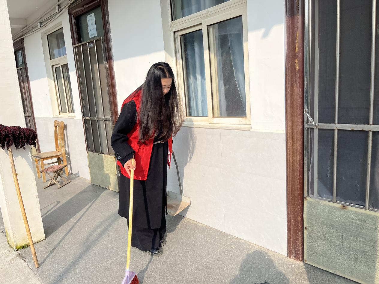 活动当天,志愿者们带着抹布、扫帚、拖把等清洁工具,一到敬老院就迅速投入到紧张的劳动中。她们分工明确,干劲十足,有的负责清扫院内的落叶和杂物,有的仔细擦拭门窗、扶手和桌椅,有的则深入到老人们的房间,帮助整理床铺、打扫卫生。虽然天气微凉,但大家的热情丝毫未减,忙碌的身影穿梭在敬老院的各个角落,汗水浸湿了她们的衣衫,却换来了敬老院环境的焕然一新。