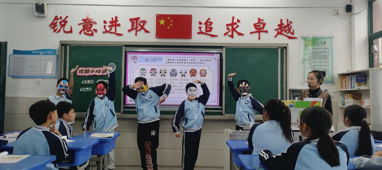 在泗县雪枫小学的戏曲课上,孩子们水袖轻扬,唱念做打间感受国粹魅力;北校区报告厅内,非遗传承人朱祥老师正深情讲述《水母娘娘沉泗州》的传说,学生们在跌宕情节中触摸家乡文脉。