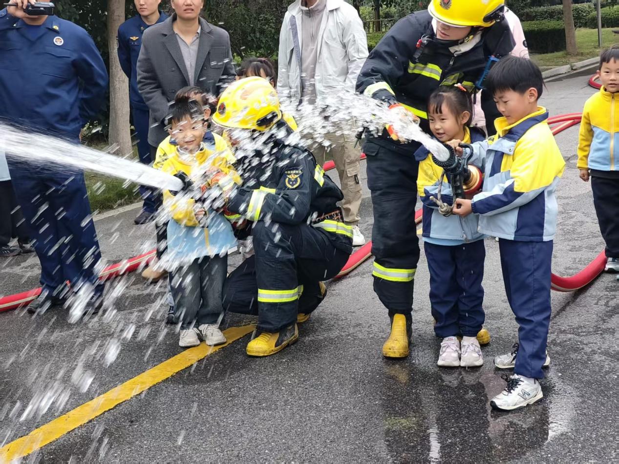 在互动环节,消防员展示了快速穿戴战斗服、结绳逃生等专业技能,其迅捷利落的动作赢得了全场热烈的掌声。在“你问我答”中,孩子们天马行空的问题——“消防车能装多少水?”“你们救火的时候害怕吗?”——都得到了消防员叔叔耐心而风趣的解答,现场笑声不断,气氛热烈。