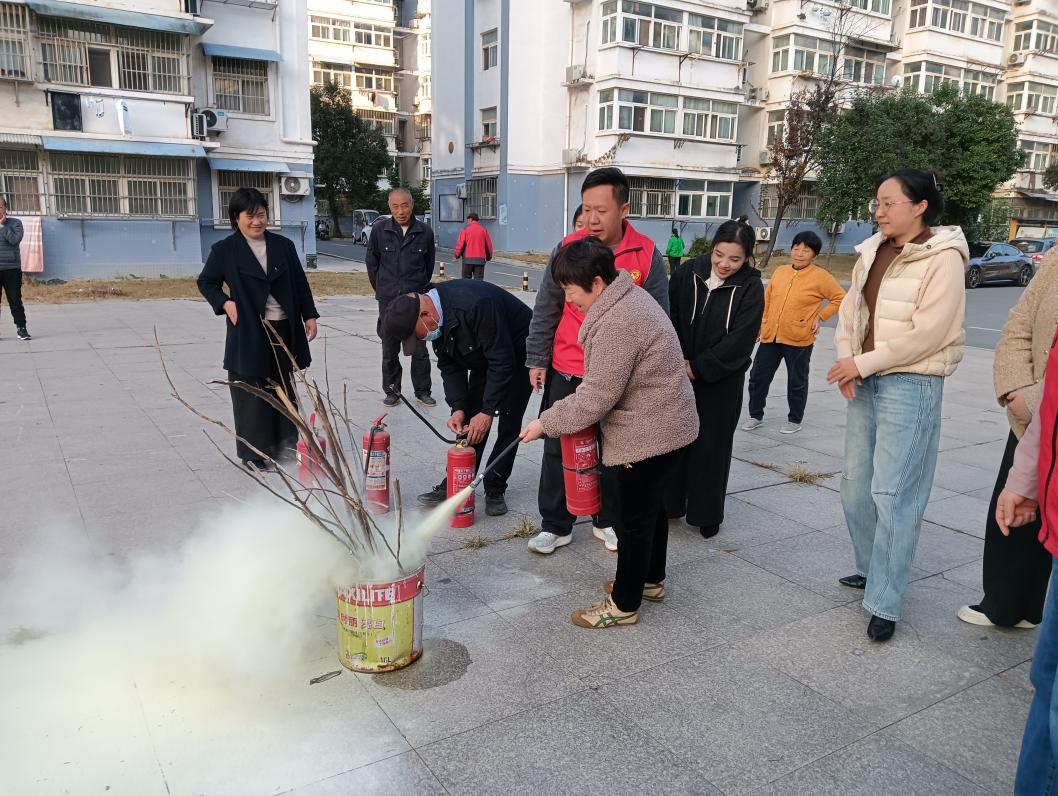 活动现场设置了模拟火灾点,居民们在工作人员的指导下,亲身实践灭火器的使用方法。大家按照“提、拔、握、压”的步骤,即提起灭火器、拔掉保险销、握住喷管、压下把手,对着燃烧的树枝进行灭火操作。从最初的略显生疏到后来的熟练操作,居民们在实践中掌握了灭火器的正确使用技能。