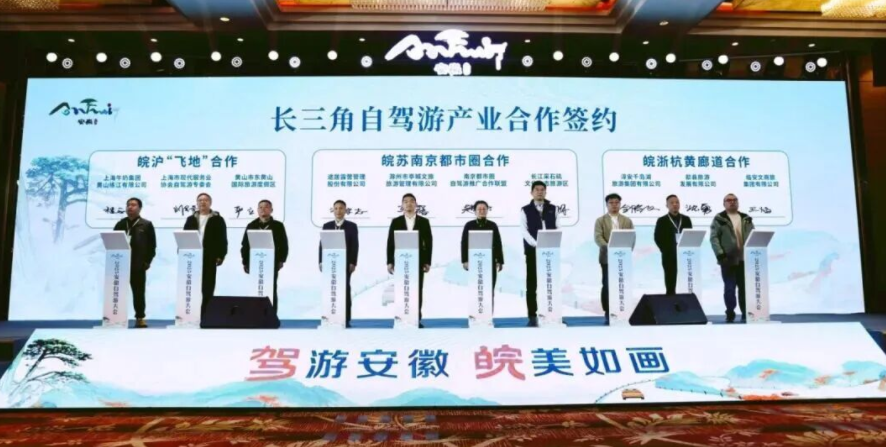 紧扣长三角一体化、淮海经济区协同发展国家战略,大会以签约合作为纽带,推动区域协作与产业跨界融合迈向新阶段。现场成功促成三项重要签约:长三角自驾游产业合作签约、淮河文旅大环线自驾游渠道商合作签约、安徽省文化和旅游厅与奇瑞汽车“旅行+”战略合作签约,用跨省渠道、跨省线路、跨界企业把“驾游安徽”推向一体化、实体化新阶段。