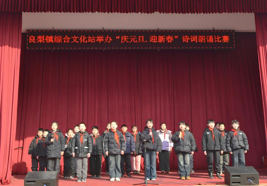 2025年12月29日,砀山县良梨镇“庆元旦 迎新春”诗词朗诵比赛在镇综合文化站乡村大舞台精彩上演,来自全镇各学校的数十名学生踊跃登台,以声传情,用饱满的热情共庆元旦佳节。
